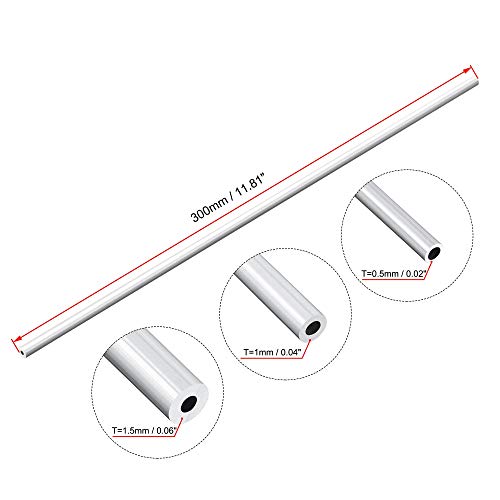 Sourcing map 6063 Alluminio Tubo, 3mm 4mm 5mm OD x 2mm Interno Dia 300mm Lunghezza Continuo Rotondo Tubo Tubi, Confezione da 3