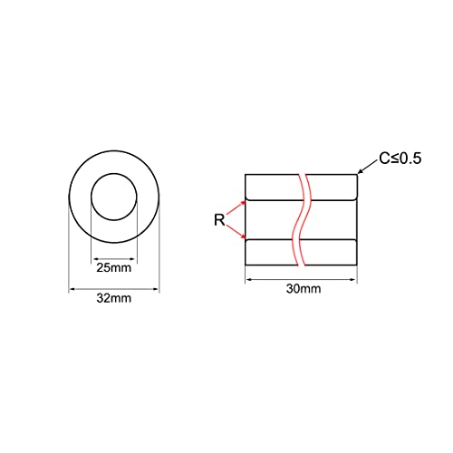 Foro: 25mm, Diametro esterno: 32mm, lunghezza: 30mm
