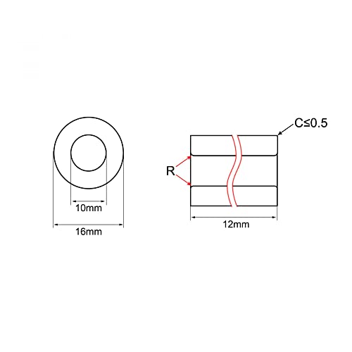 foro: 10mm, Diametro esterno: 16mm, lunghezza: 12mm