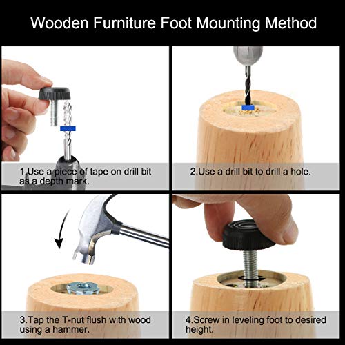 Pacchetto include: 4 x regolabile piedi livellamento e 4 x dadi a T