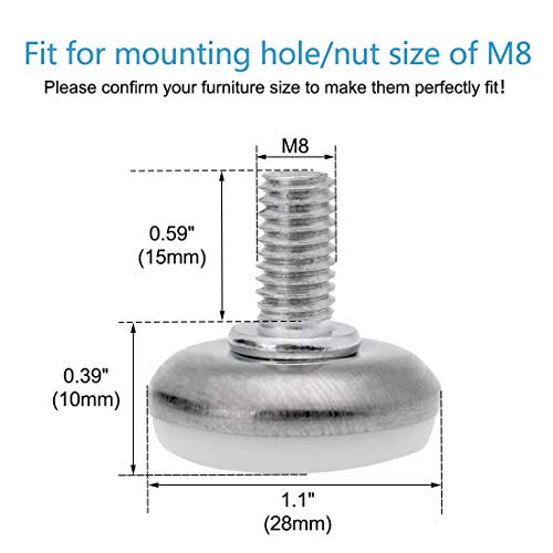 Facile installare - fatta alta qualità plastica e metallo, è durevole e conveniente, facile installare e migliore stabilità per mobili e piedini macchina. scelta giusta per tuo prodotto quindi avvitare per come si desidera. Se si inserisce per M8 Dimensioni montaggio, è possibile utilizzare questi piedini livellamento per installare prodotto piedi
