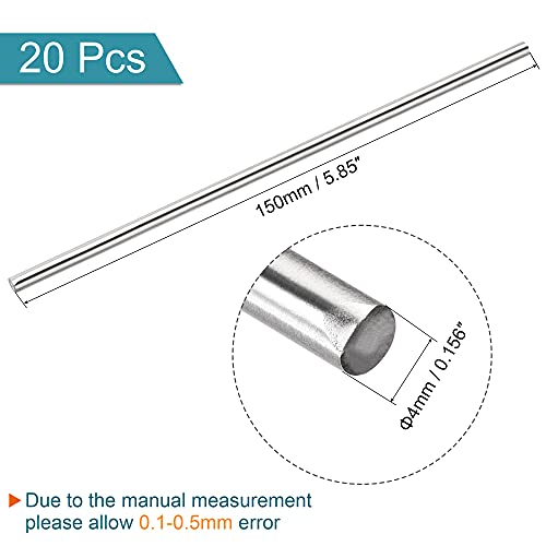 Sourcing map Barre rotonde in acciaio inox 304, diametro 4 mm, lunghezza 150 mm, per vari alberi fai da te, modello di aereo, nave auto, confezione da 20