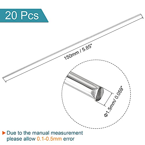 Sourcing map Barre rotonde in acciaio inossidabile 304, diametro 1,5 mm, lunghezza 150 mm, per vari alberi, fai da te, modellini, auto, aereo, nave, confezione da 20