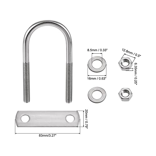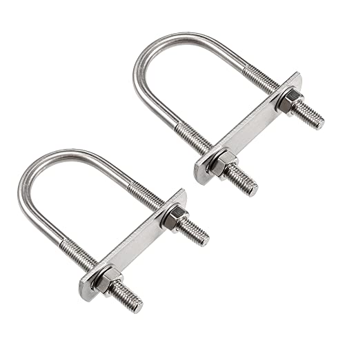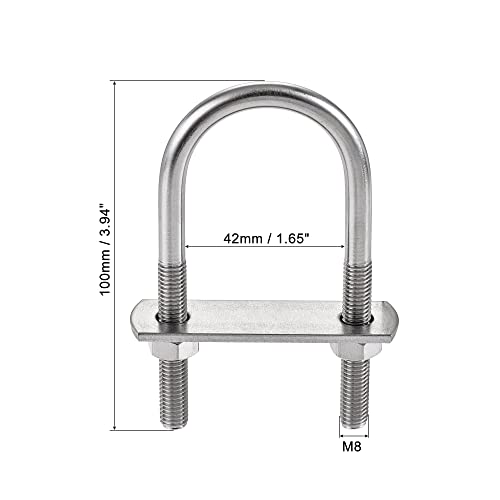 Sourcing map Bullone a U rotondo 42 mm Larghezza interna 100 mm Lunghezza Acciaio M8 con Dadi, Piastra, Rondelle 2 Set