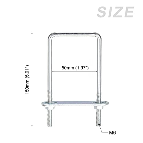 Sourcing map U bulloni 4 set (M6x50x150mm), quadrato U bullone in acciaio al carbonio con accessori - per costruzione, tubo