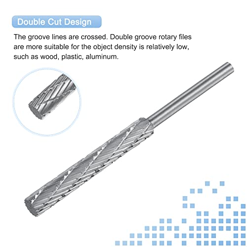 Sourcing map Carburo tungsteno Rotante Lime 1/8" 3mm Gambo, 1/5"x1-3/8" 5mmx35mm Taglio Doppio Taglio Cilindro Molatura Fresa Utensili per Legno Morbido Metallo Lucidatura Intaglio