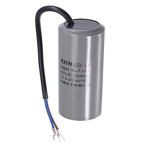 Sourcing map CBB60 Run Condensatore 45uF 450V AC 2 Fili 50/60Hz Cilindro 105x50mm con Terminale per Compressore D'aria Pompa Acqua Motore