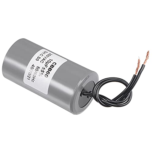 Sourcing map CBB60 Run Condensatore 10uF 250V AC 2 Fili 50/60Hz Cilindro 73x38mm per Compressore D'aria Pompa Acqua Motore