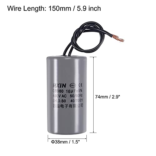 Sourcing map CBB60 Run Condensatore 16uF 450V AC 2 Fili 50/60Hz Cilindro 74x38mm per Compressore D'aria Pompa Acqua Motore