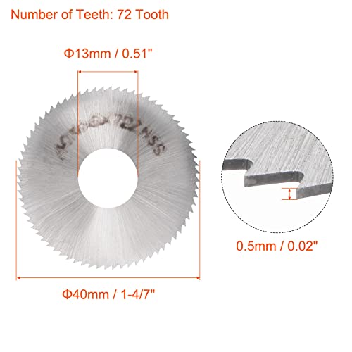 Sourcing map Lama per sega circolare, diametro 40 mm (1-4/7 ") spessore 0,5 mm 72 denti, fresa in acciaio ad alta velocità 6542 (HSS) con pergolato da 13 mm per taglio in legno PVC alluminio