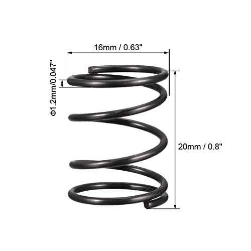 Sourcing map Compressione Molla - 1,2 mm Filo Diametro 16 mm OD 20 mm Libero Lunghezza Molla Acciaio Estensione Molla Nero 10Pz