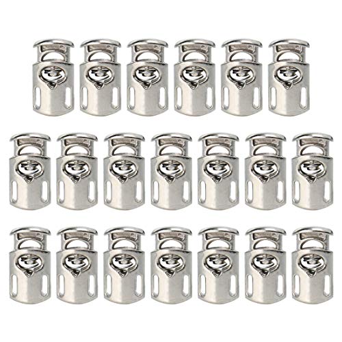 Sourcing map Cordone Serratura Tappo Terminale Molla Fermo Singolo Foro Dispositivo Fissaggio Tappo Corda Terminale per Coulisse Vestiario Borse Campeggio, Laccio Scarpe Tono Argento 20pcs