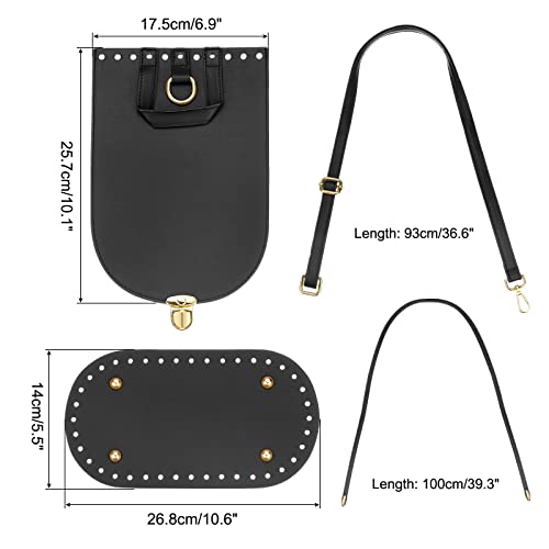 Sourcing map Kit per la creazione di borse in pelle, 5 pezzi, set fai da te per borse in pelle PU, zaino, fondo, tracolla, copertura con patta, coulisse per la creazione di borse fai da te, nero