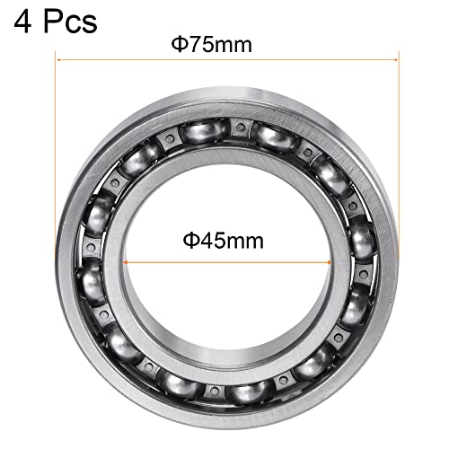 Sourcing map 6009 cuscinetti a sfera profondi della scanalatura 45mm Foro 75mm OD 16mm Spessore C3 Tipo aperto Acciaio al cromo 4pcs