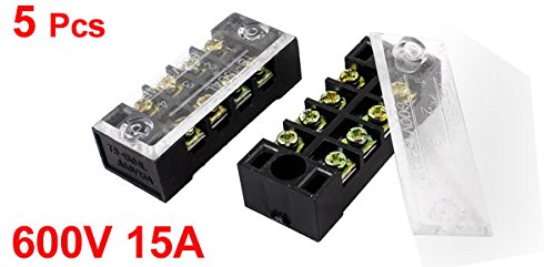 Sourcing map 5 Pz Doppio 4 Posizione Coperto Vite Terminale Blocco Striscia 600V 15A