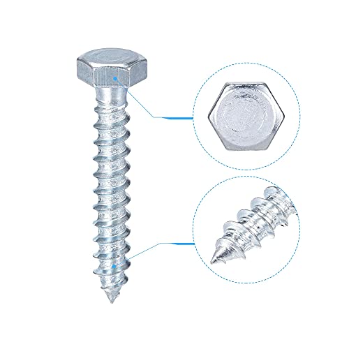 Sourcing map Esagonale Testa Viti, M10 x 60mm Carbonio Acciaio Zinco Placcato Mezzo Filettatura Autofilettante Bulloni per Legno Vite 10pz