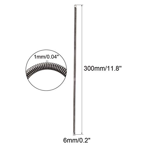 Sourcing map Estensione Molla - 1mm Filo Diametro 6mm OD 300mm Libero Lunghezza Molla Acciaio Piccolo Doppio Gancio Tensione Molla 2pz