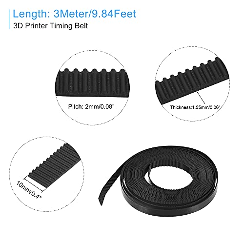 Sourcing map Nero Fasatura Cinghia 3 Metro Circonferenza 10mm Larghezza Apertura Montaggio Sincrono Pulegge Ruota per 3D Stampante