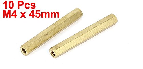 Sourcing map M4 x 45mm Femmina Filettato Ottone Esagonale Distanziale Pilastro Spaziatore Dado 10pz
