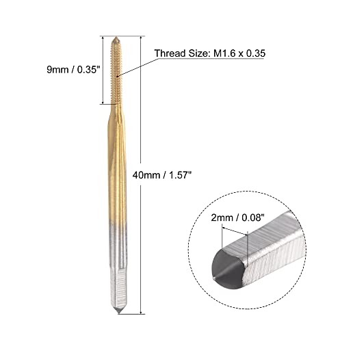 Sourcing map Filettatura Fresatura Maschio Metrico M1.6 x 0,35, Titanio Rivestito Cobalto HSS (Alto Velocità Acciaio) 3 Dritto Scanalature Micro Vite Toccare per Orologi e Orologi Polso