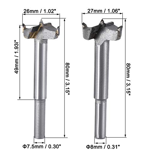 Sourcing map Forstner - Punte da trapano per legno, diametro 26 mm, 27 mm, taglio rotondo per cerniere e compensato, strumento per legno 2 in 1