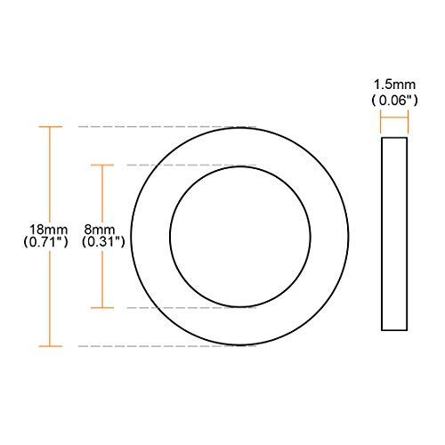 Sourcing map Gomma Piatte Rondelle 18mm OD 8mm ID 1.5mm Spessore per Rubinetto Tubo Acqua Tubo Confezione da 10