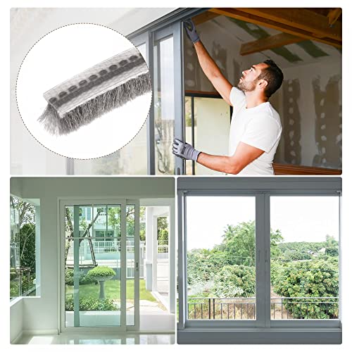 Sourcing map Guarnizione a spazzola per rimuovere le intemperie (3/16"x16"x16,1,2 m), striscia per porta con slot per schede con foglio di silicio, per porte scorrevoli e finestre e armadio