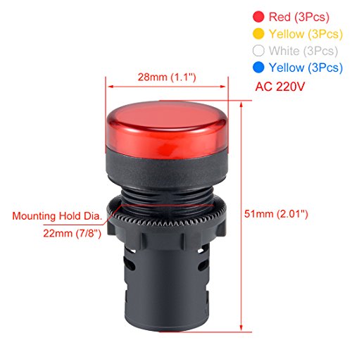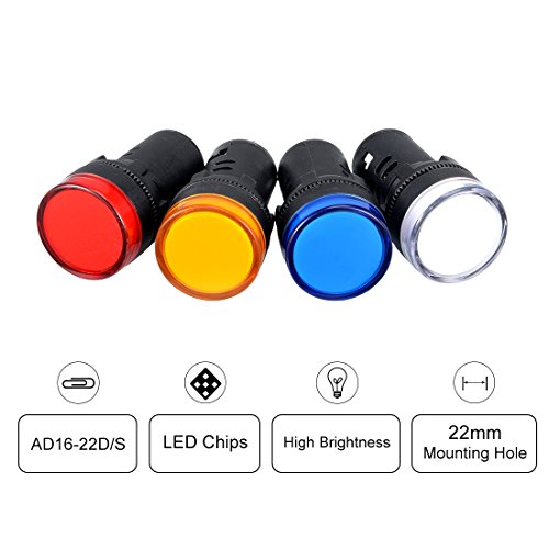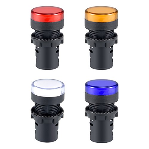 Sourcing map 4 pz AC 220 V indicatori luci, rosso+blu+giallo+bianco LED, montaggio a pannello 7/8" 22mm
