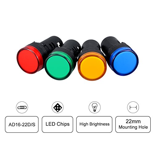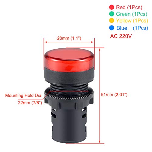 Sourcing map 4 pz AC 220 V indicatori luci, rosso+blu+giallo+verde LED, montaggio a pannello 7/8" 22mm