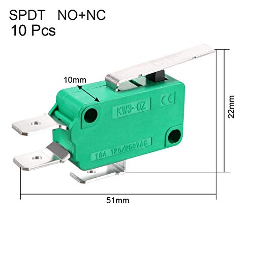Sourcing map 10 pz KW3-OZ 16A 125/250VAC SPDT NA NC cerniera tipo leva micro interruttori fine corsa