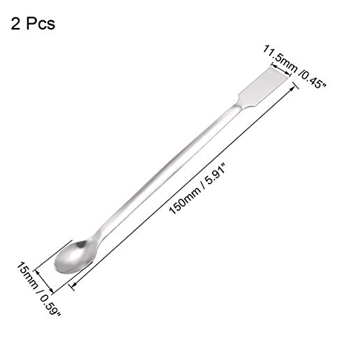 Sourcing map Laboratorio Campionamento Reagente Cucchiaio 304 In Acciaio Inox 2 in 1 Doppia Testa Laboratorio Miscelazione Spatola 150mm 2Pcs