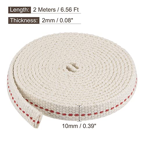 Sourcing map Olio Lampada Stoppino Cotone 10mm Piatto Largo 2 Metro Lungo con Rosso Punto per Illuminazione