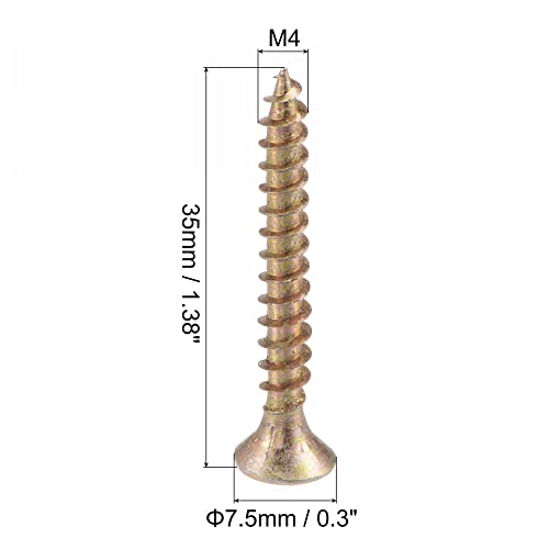 Sourcing map M4 x 35mm Legno Viti Croce Piatto Testa Carbonio Acciaio Colore Zinco Placcato Auto Autofilettanti Viti 200pz