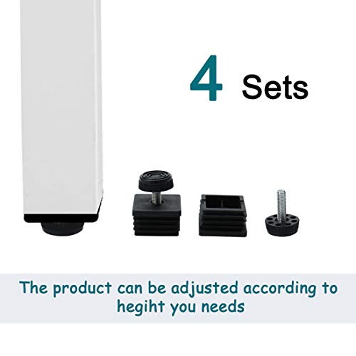 Sourcing map Livellamento Piede 40mm x 40mm Quadrato Tubo Inserti Kit Mobile Scivolo Regolabile Livellatore per Mensole Tavolo Scrivania Gamba Nero 4 set