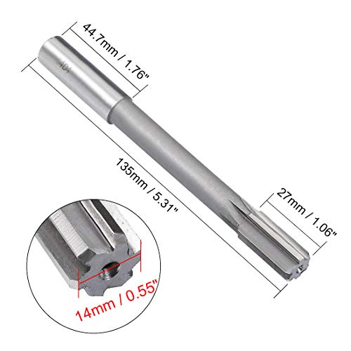 Specifiche: Diametro di taglio.: 14 mm. Lunghezza della scanalatura: 27 mm. Lunghezza totale: 135 mm. Lo strumento in acciaio ad alta velocità è buono per applicazioni generali, con combinazione di durezza e durezza per stenza all'usura