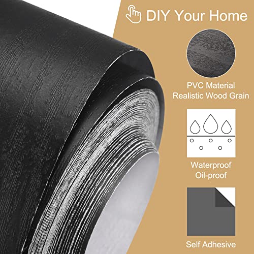 Sourcing map Nastro adesivo con venature del legno, 10 cm x 90 m, adesivo autoadesivo per riparazione di pareti, angoli, tavoli, porte, divani, mobili, decorazione per la casa (nero)