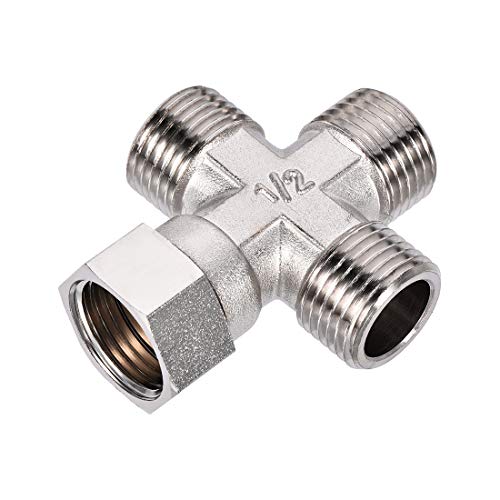 Sourcing map Ottone Croce Tubo Raccordo 1/2G Maschio Femmina Filettatura Accoppiatore Riduzione Quattro-Vie Raccordo 60mm X 51mm