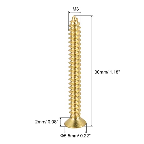 Sourcing map Viti in ottone per legno, M3x30mm Phillips testa piatta autofilettante connettore per porta, armadio, mobili in legno 100Pcs
