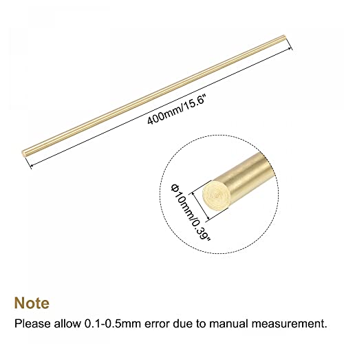 Sourcing map Asta in ottone, asta rotonda in ottone massiccio, diametro 10 mm, lunghezza 400 mm, barra per tornio, per modellini radiocomandati fai da te, confezione da 1