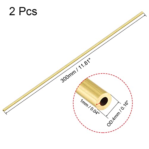 Sourcing map Ottone Rotondo Tubo 300mm Lunghezza 4mm OD 1mm Parete Spessore Continuo Dritto Tubo Tubi 2pz
