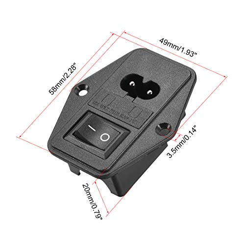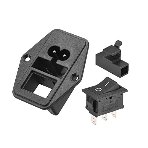 Sourcing map C8-8 Pannello Montaggio Spina Adattatore 250V 10A 2P IEC Ingresso Modulo Spina Connettore di alimentazione Presa Dritto con 3 Pin Fusibile Interruttore 2 pezzi