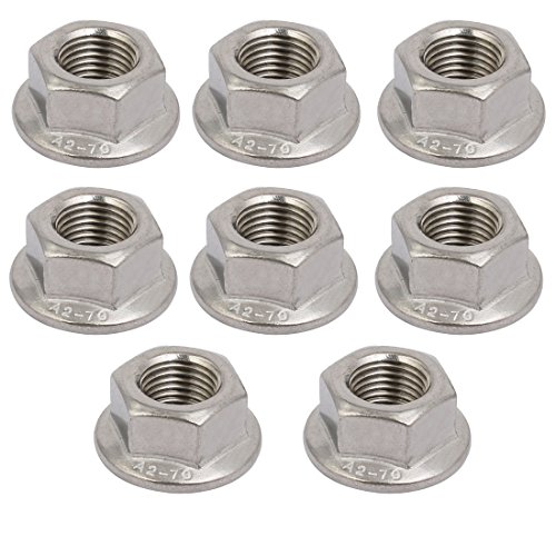 Sourcing map 8pz M12 x 1.25mm passo Filettatura metrica passo fine 304 acciaio inossidabile Dado flangia esagonale