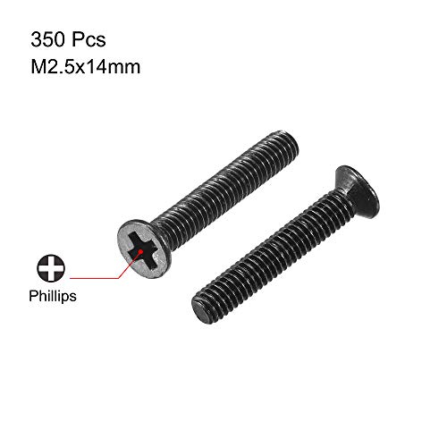 Sourcing map M2,5 x 14 mm Phillips vite di fissaggio nero per computer portatile PC TV ventilatore interruttore audio 350 pz