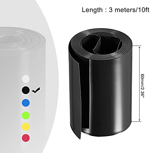 Sourcing map 60mm Piatto Batteria Blocco PVC Riscaldamento Restringimento Guaina Tubo 10ft Riscaldamento Restringimento Tubo Nero