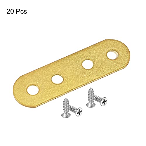 Sourcing map Piatto Dritto Supporto Ripara Piastra 55 x 18 x 1,5mm Ferro Fissaggio Rammendo Staffa Connettore Oro Tono per Mobili Mensola Armadio 20pz