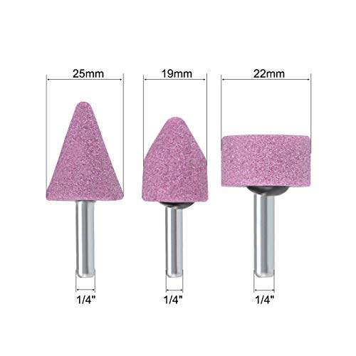 Sourcing map Pietra abrasiva punti set cromo corindone Mola con 1/4" gambo 3 pz
