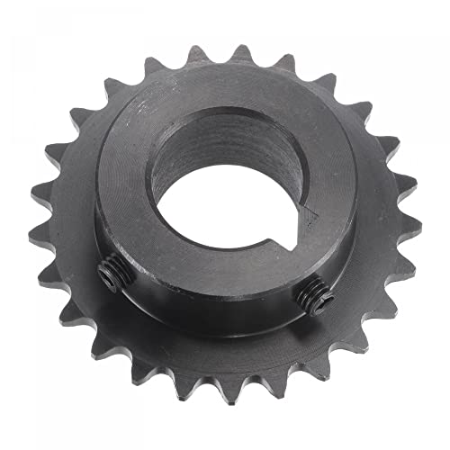 Sourcing map Pignone a rullo a 25 denti tipo B, catena 25, passo singolo 1/4", foro 20mm ossido nero C45 acciaio al carbonio, chiavetta con viti di fissaggio per ISO 04C