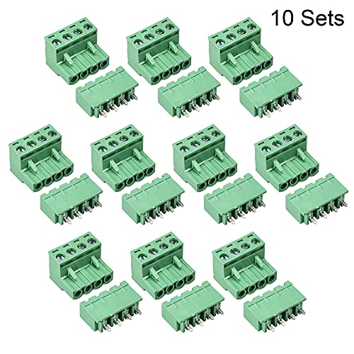 Sourcing map 4 Pin 5.08mm Pitch Maschio Femmina PCB Morsettiera Vite 10 Set