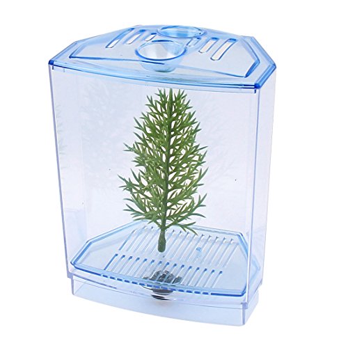 Sourcing map Plastica Aquarium Fish Fry Allevamento Betta Tank House Blu Chiaro W Plant