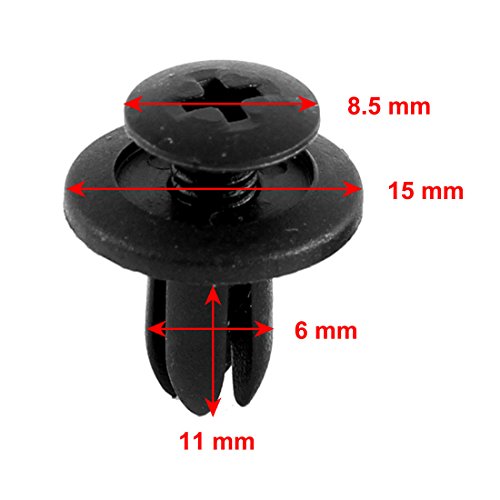 Sourcing map 30 Pz 6mm Foro plastica Vite Rivetto Macchina Auto Porta paraurti stringente Gancetti Nero